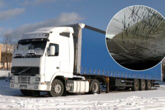Nuo sunkvežimių krentantis ledas ar sniegas daužo lengvųjų automobilių priekiniai stiklus, žibintus,…
