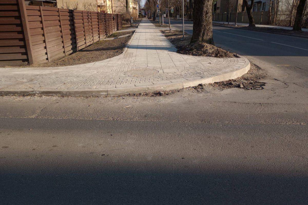 „Aukštaičių gatvės atkarpoje link Savanorių prospekto baigiami kloti nauji šaligatviai. Puiku! Bet!!! Aukštaičių g. ir P. Višinskio bei Aušros g. sankryžose nepadaryti nuolydžiai.
